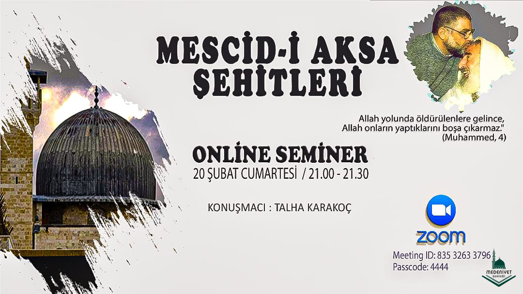 Okumaya Devam EtBu haftaki Cumartesi sohbetimizi Talha Karakoç Hocamız Mescid-i Aksa Şehitleri konulu sunumunu zoom üzerinden yapacaktır