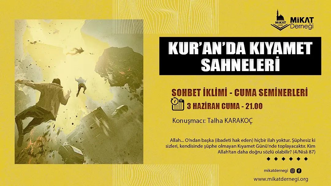 Okumaya Devam EtMikat Derneği 3 Haziran Cuma akşamı saat 21.00’de Sayın Talha Karakoç Hoca’mız ‘’Kur’an’da Kıyamet Sahneleri” başlıklı sunumuyla Mikat derneğinde bizlerle birlikte olacaktır. Katılımlarınızı bekliyoruz.